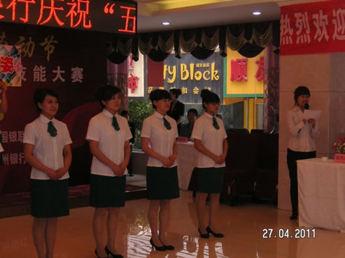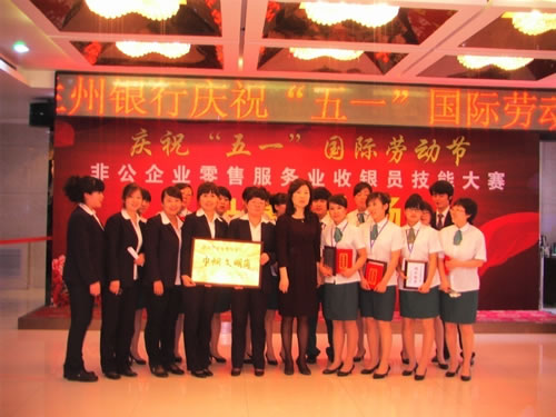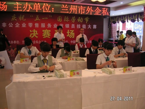 由蘭州市總工會主辦的“非公企業(yè)零售服務業(yè)收銀員技能比賽” 于2011年4月27日下午,在人民飯店落下帷幕。參加比賽的選手都是來自各公司和企業(yè)的業(yè)務尖兵,現(xiàn)場壓力重生,但是能和高手同臺競技是挑戰(zhàn),也是幸運,大家都為榮譽而奮斗。比賽經(jīng)過單指單張、多指多張、機器點鈔、銀行卡刷卡、即問即答、工裝展示環(huán)節(jié)近四個小時的比拼。最終國芳百貨收銀部取得了驕人的成績,團隊授予“巾幗文明崗”,參賽的12名選手在單項成績中,兩人榮獲得一等獎、四人榮獲二等獎、四人榮獲三等獎、兩人榮獲優(yōu)秀獎。