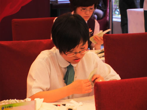 國芳集團參賽選手認真、快速的清點手中的鈔票,展現(xiàn)出了扎實的基本功